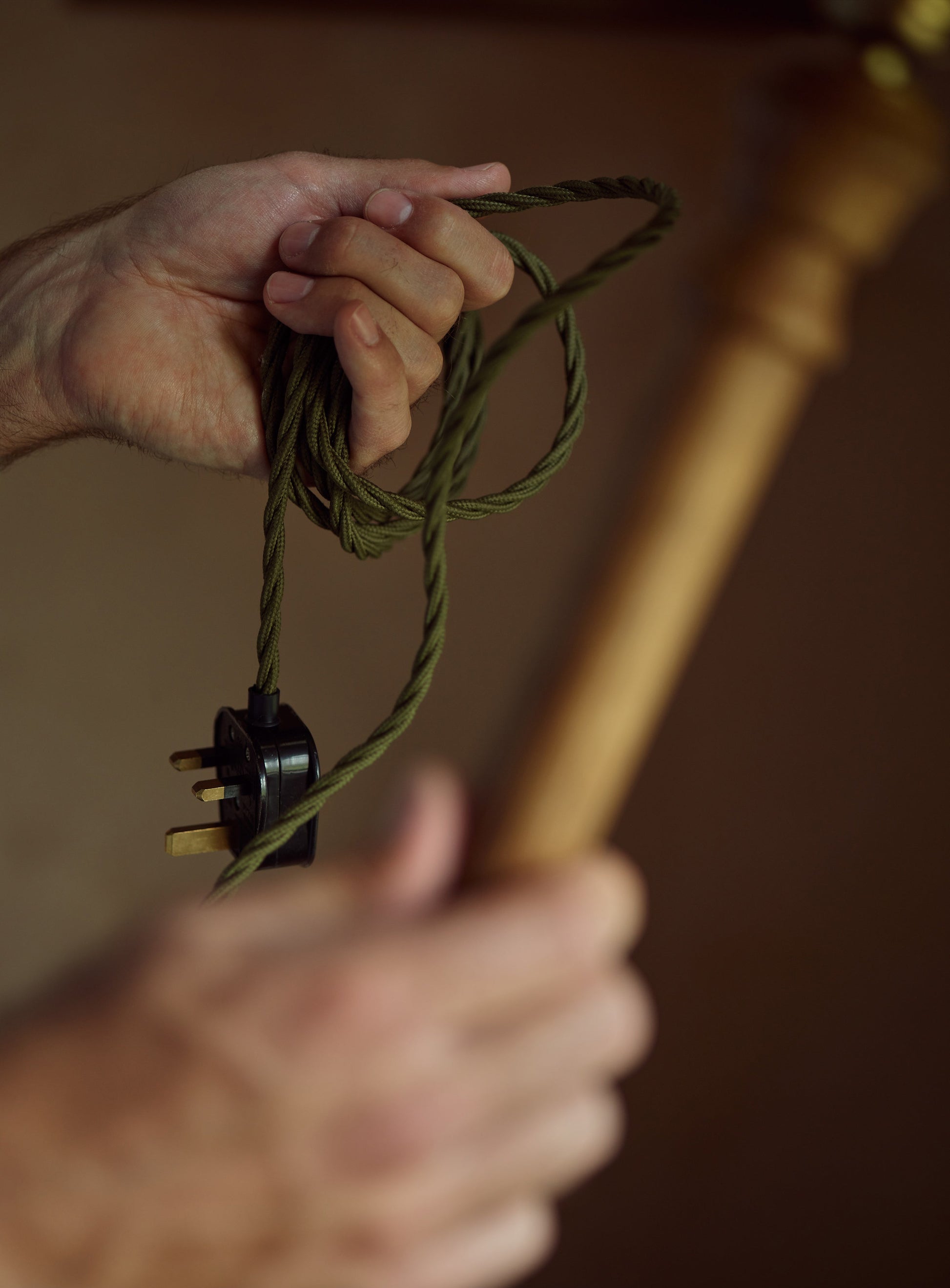 - Featuring a heritage-inspired deep olive twisted cord and brass bulb holder