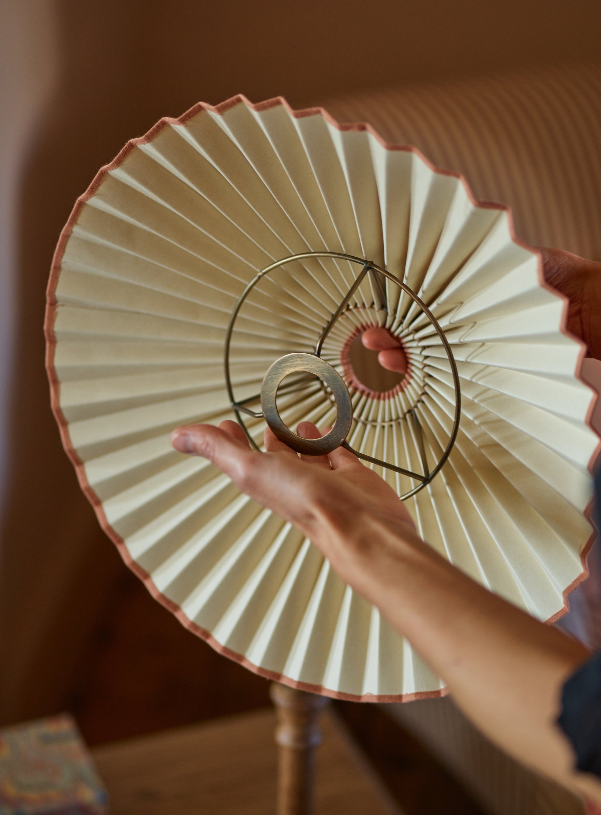 - An elegant pleated lampshade in a delicate plaster pink