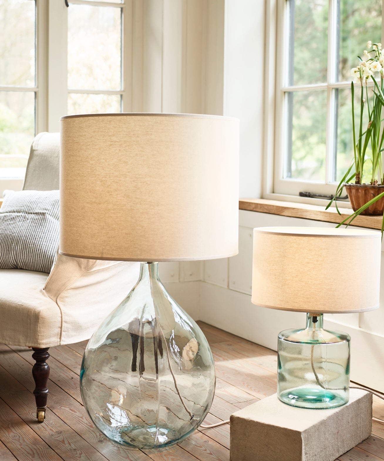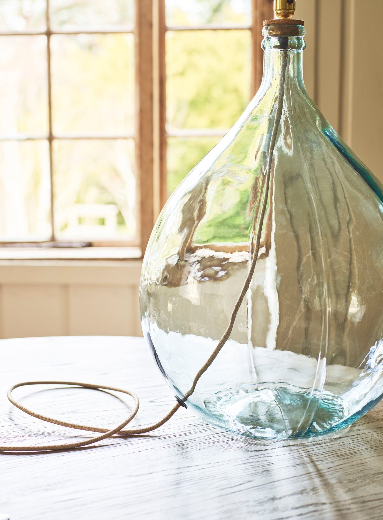 - Teardrop-shaped recycled glass lamp base